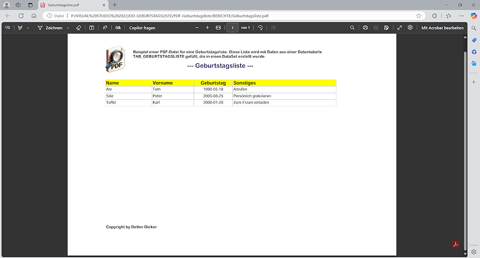 4. PDF anzeigen: - Die erstellte PDF-Datei wird automatisch geöffnet, z. B. im Internet Explorer.